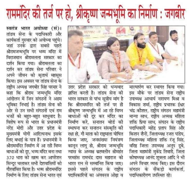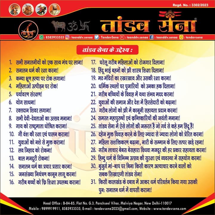 • पंजाब में तांडव सेना का आगाज़, • मीडिया बाईट, • अनंत श्री विभूषित श्री श्री 1008 महामंडलेश्वर डॉ. राजेश्वर दास जी महाराज के आशीर्वाद से तांडव सेना को मिली नई ऊर्जा और प्रेरणा, • अनंत श्री विभूषित श्री श्री 1008 महामंडलेश्वर डॉ. राजेश्वर दास जी महाराज के आशीर्वाद से तांडव सेना को मिली नई ऊर्जा और प्रेरणा” , • पर्यावरण प्रशिक्षण कार्यक्रम , वृंदावन , • नेचुरल वेलफेयर काउंसिल, पर्यावरण प्रशिक्षण कार्यक्रम में तांडव सेना सम्मलित हुई , • तांडव सेना, • अनंत श्री विभूषित श्री श्री 1008 महामंडलेश्वर डॉ. राजेश्वर दास जी महाराज के आशीर्वाद से तांडव सेना को मिली नई ऊर्जा और प्रेरणा, • “अनंत श्री विभूषित श्री श्री 1008 महामंडलेश्वर डॉ. राजेश्वर दास जी महाराज के आशीर्वाद से तांडव सेना को मिली नई ऊर्जा और प्रेरणा” , • तांडव सेना संदेश , • तांडव सेना, खेल प्रकोष्ठ , • तांडव सेना, • तांडव सेना, • 15 जनवरी 2026 अयोध्या जिला कमेटी बैठक फैजाबाद , • तांडव सेना खेल प्रकोष्ठ , • बांग्लादेश हिंसा, • Bangladesh Violence , • Bangladesh Violence , • तांडव सेना प्रेस न्यूज़, • प्रेस रिलीज, • प्रेस न्यूज़, • प्रेस न्यूज़, • प्रेस रिलीज़, • प्रेस न्यूज़, • प्रेस रिलीज़, • प्रेस न्यूज़ , • प्रेस न्यूज़ , • प्रेस रिलीज़ , • प्रेस रिलीज़ , • प्रेस न्यूज, • प्रेस न्यूज, • राष्ट्रीय उपाध्यक्ष आचार्य नारायण मिश्रा जी अयोध्या में गुरुजनों के साथ सर्वे करते हुए , • तांडव सेना द्वारा स्वामी प्रसाद मौर्या का विरोध , • तांडव सेना मध्य प्रदेश टीम का धन्यवाद , • स्वच्छता मिशन बरेली में तांडव सेना ने लिया भाग , • मेवात हरियाणा हिंदुओं पर हुए अत्याचार पर विचार रखते हुए, • तांडव सेना महिला शक्ति, बरेली , • तांडव सेना टीकमगढ़ मध्य प्रदेश में आदि पुरुष फिल्म का विरोध , • तांडव सेना सांग, • राष्ट्रीय कार्यालय पर भक्ति भजन, • लोकसभा स्पीकर श्री ओम बिरला जी के आवास पर , • जय जय महाकाल, • सनातन धर्म की आस्था पर चला हथोड़ा , • प्रेस वार्ता, • राष्ट्रीय अध्यक्ष जी का संदेश , • तांडव सेना, • राष्ट्रीय कार्यकारिणी बैठक, • तांडव सेना मीडिया के साथ , • हुनमान चालीसा पाठ , • तिरंगा यात्रा, • तिरंगा यात्रा, • तांडव सेना, • जय श्री राम, • गणतंत्र दिवस की शुभकामनाएं , • वरिष्ठ नागरिकों के साथ लोहरी मनाई, • दिल्ली में प्राण प्रतिष्ठा को लेकर हुई बैठक , • श्रद्धांजलि , • मध्य प्रदेश टीम , • दीपावली की हार्दिक शुभकामनाएं , • मध्य प्रदेश , • जय तांडव तय तांडव, • जय तांडव तय तांडव, • तांडव सेना की ओर से जिहादियों को सीधी चेतावनी, • तांडव सेना पहुंची अयोध्या, • तांडव सेना प्रेस वार्ता, • तांडव सेना प्रेस वार्ता, • Tandav Sena Song, • Tandav Sena Song, • तिरंगा यात्रा, • राष्ट्रीय कार्यकारिणी बैठक , • तिरंगा यात्रा , • तिरंगा यात्रा , • तांडव सेना, • 