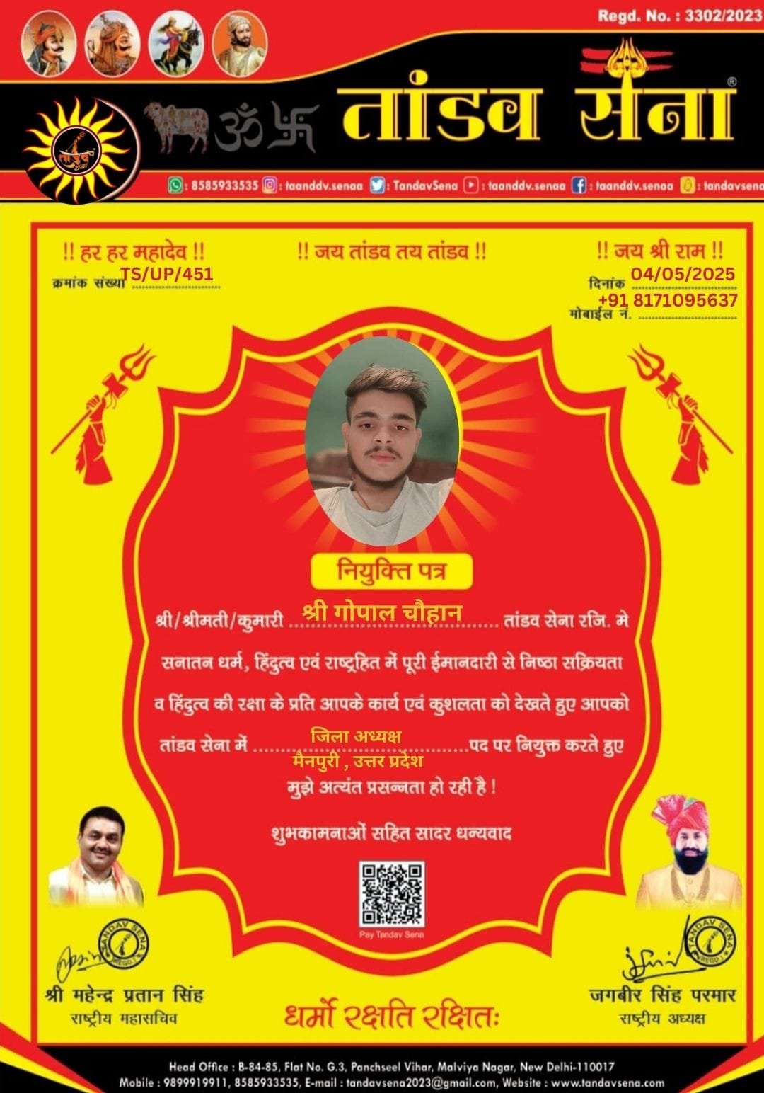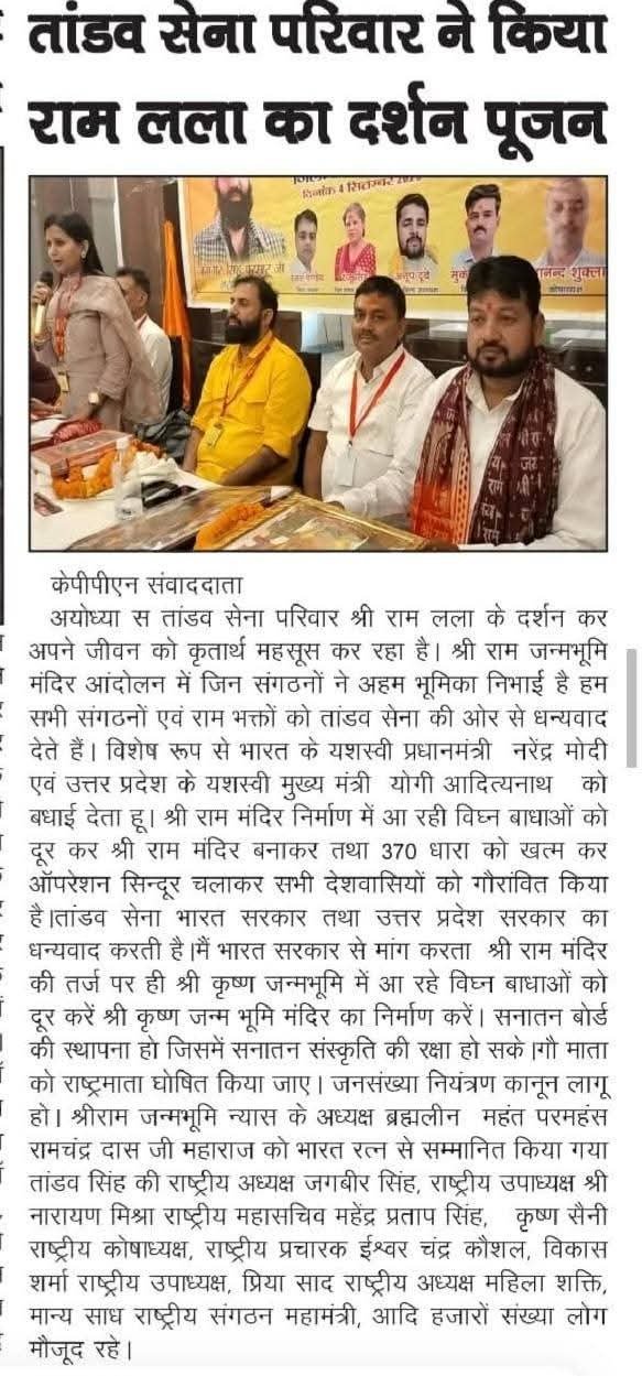 • पंजाब में तांडव सेना का आगाज़, • मीडिया बाईट, • अनंत श्री विभूषित श्री श्री 1008 महामंडलेश्वर डॉ. राजेश्वर दास जी महाराज के आशीर्वाद से तांडव सेना को मिली नई ऊर्जा और प्रेरणा, • अनंत श्री विभूषित श्री श्री 1008 महामंडलेश्वर डॉ. राजेश्वर दास जी महाराज के आशीर्वाद से तांडव सेना को मिली नई ऊर्जा और प्रेरणा” , • पर्यावरण प्रशिक्षण कार्यक्रम , वृंदावन , • नेचुरल वेलफेयर काउंसिल, पर्यावरण प्रशिक्षण कार्यक्रम में तांडव सेना सम्मलित हुई , • तांडव सेना, • अनंत श्री विभूषित श्री श्री 1008 महामंडलेश्वर डॉ. राजेश्वर दास जी महाराज के आशीर्वाद से तांडव सेना को मिली नई ऊर्जा और प्रेरणा, • “अनंत श्री विभूषित श्री श्री 1008 महामंडलेश्वर डॉ. राजेश्वर दास जी महाराज के आशीर्वाद से तांडव सेना को मिली नई ऊर्जा और प्रेरणा” , • तांडव सेना संदेश , • तांडव सेना, खेल प्रकोष्ठ , • तांडव सेना, • तांडव सेना, • 15 जनवरी 2026 अयोध्या जिला कमेटी बैठक फैजाबाद , • तांडव सेना खेल प्रकोष्ठ , • बांग्लादेश हिंसा, • Bangladesh Violence , • Bangladesh Violence , • तांडव सेना प्रेस न्यूज़, • प्रेस रिलीज, • प्रेस न्यूज़, • प्रेस न्यूज़, • प्रेस रिलीज़, • प्रेस न्यूज़, • प्रेस रिलीज़, • प्रेस न्यूज़ , • प्रेस न्यूज़ , • प्रेस रिलीज़ , • प्रेस रिलीज़ , • प्रेस न्यूज, • प्रेस न्यूज, • राष्ट्रीय उपाध्यक्ष आचार्य नारायण मिश्रा जी अयोध्या में गुरुजनों के साथ सर्वे करते हुए , • तांडव सेना द्वारा स्वामी प्रसाद मौर्या का विरोध , • तांडव सेना मध्य प्रदेश टीम का धन्यवाद , • स्वच्छता मिशन बरेली में तांडव सेना ने लिया भाग , • मेवात हरियाणा हिंदुओं पर हुए अत्याचार पर विचार रखते हुए, • तांडव सेना महिला शक्ति, बरेली , • तांडव सेना टीकमगढ़ मध्य प्रदेश में आदि पुरुष फिल्म का विरोध , • तांडव सेना सांग, • राष्ट्रीय कार्यालय पर भक्ति भजन, • लोकसभा स्पीकर श्री ओम बिरला जी के आवास पर , • जय जय महाकाल, • सनातन धर्म की आस्था पर चला हथोड़ा , • प्रेस वार्ता, • राष्ट्रीय अध्यक्ष जी का संदेश , • तांडव सेना, • राष्ट्रीय कार्यकारिणी बैठक, • तांडव सेना मीडिया के साथ , • हुनमान चालीसा पाठ , • तिरंगा यात्रा, • तिरंगा यात्रा, • तांडव सेना, • जय श्री राम, • गणतंत्र दिवस की शुभकामनाएं , • वरिष्ठ नागरिकों के साथ लोहरी मनाई, • दिल्ली में प्राण प्रतिष्ठा को लेकर हुई बैठक , • श्रद्धांजलि , • मध्य प्रदेश टीम , • दीपावली की हार्दिक शुभकामनाएं , • मध्य प्रदेश , • जय तांडव तय तांडव, • जय तांडव तय तांडव, • तांडव सेना की ओर से जिहादियों को सीधी चेतावनी, • तांडव सेना पहुंची अयोध्या, • तांडव सेना प्रेस वार्ता, • तांडव सेना प्रेस वार्ता, • Tandav Sena Song, • Tandav Sena Song, • तिरंगा यात्रा, • राष्ट्रीय कार्यकारिणी बैठक , • तिरंगा यात्रा , • तिरंगा यात्रा , • तांडव सेना, • 